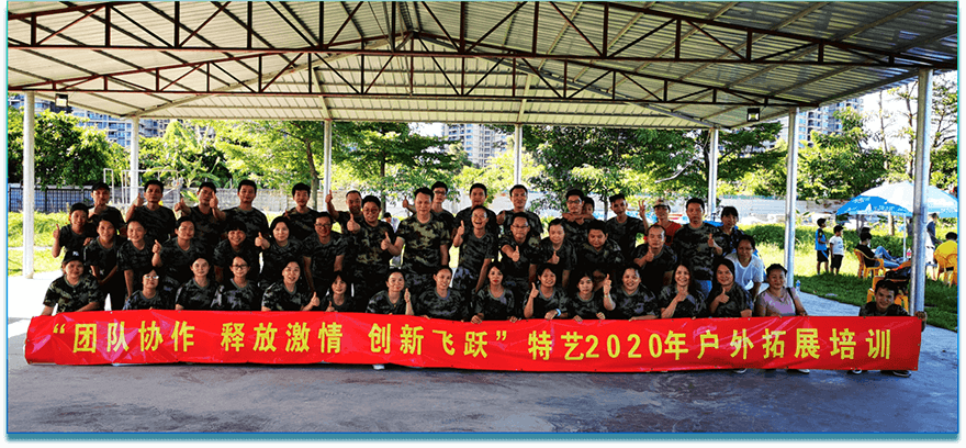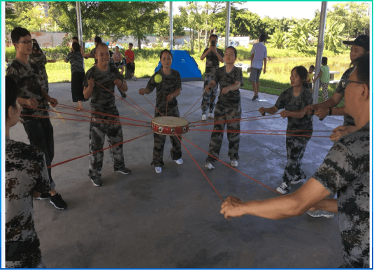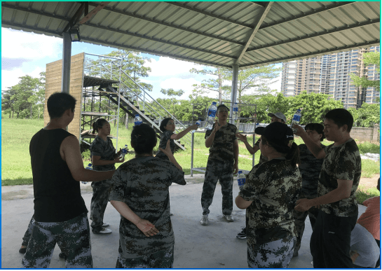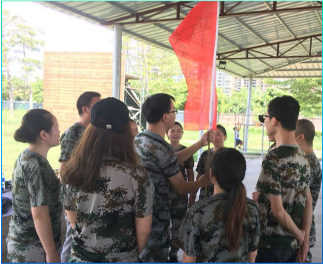 8月8日早上9點20分,換上統一的“戰服”后,在破冰游戲中大家徹底卸下工作的包袱與壓力,被分成了打虎隊、戰狼隊、必勝隊、才藝隊,擬定了口號及隊歌。此時現場的特藝人,眼中只有今天的隊友,以及團隊的勝利!